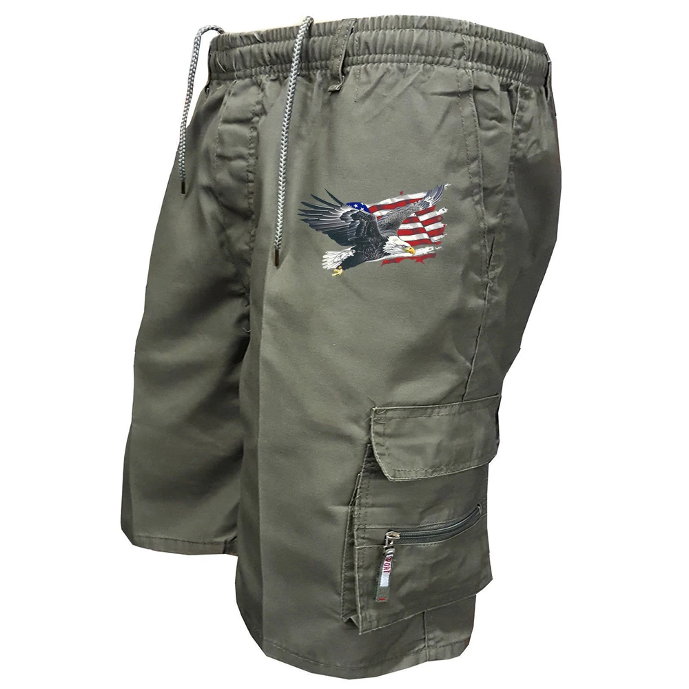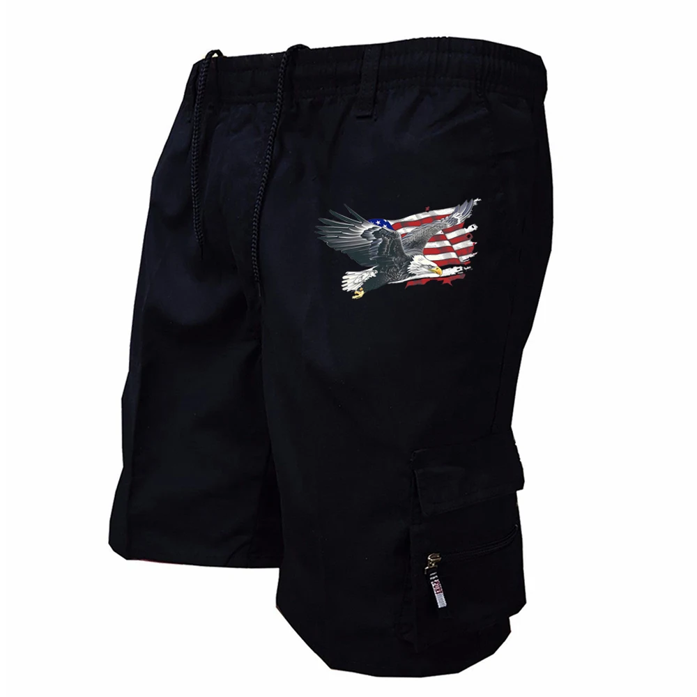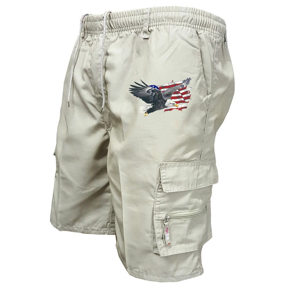 American Flag Printed Cargo Shorts Independence Day Eagle Shorts Summer Cargo Work Camping Multi-pocket Short Pants Streetwear