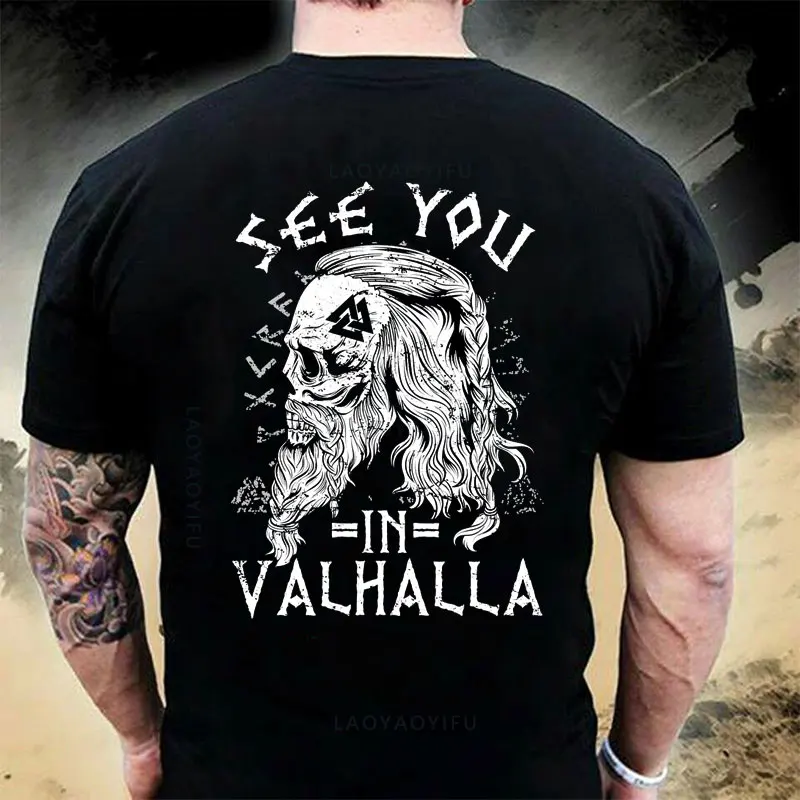 American Beard Warrior Tactical Skull Unisex T Shirt Til Valhalla Cotton T-Shirt Short Sleeve O-Neck T-shirt Casual Men’s Top
